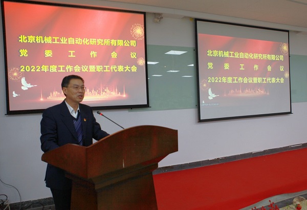 公司总经理李金村代表领导班子以《深化改革创新 聚力提质增效 奋力谱写“十四五”高质量发展新篇章》为题,做了2021年度工作报告。他指出,2021年是极不寻常的一年,北自所全面贯彻落实党中央国务院重大决策部署,坚持战略引领,发挥党建优势,把稳增长、调结构、推改革有机结合,全体干部职工攻坚克难、锐意进取,经营发展改革各项工作取得显著成效,实现了“十四五”良好开局。