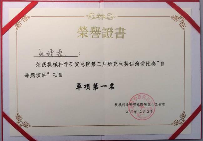 12月2日,北京机械工业自动化研究所(以下简称北自所)研究生代表队参加了机械科学研究总院第三届研究生英语演讲比赛。
