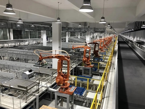 该项目拥有箱式输送线5000多米,贯穿南北厂区4个工厂、9座厂房、8条通廊、过街天桥及大型自动化立体仓库,打造了一个全方位、智能化、立体化的物流中心。该系统服务于方太厨具供应链,智能化物流中心存储规模将达到25万台,发货50000件/天,入库35000件/天,充分满足方太日益增长和不断扩大的产能需求。交付完成的物流系统具备成品装箱封箱后的件箱长距离输送、机器人自动码垛、托盘自动入库、堆垛机自动入出库、托盘自动出库、机器人自动拆垛、件箱高速分拣等功能,实现了生产-码垛-仓储-拆垛-分拣-配送的全自动化流程,完全满足各项技术指标。
