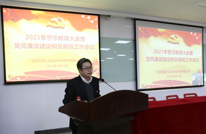 3月16日,北自所召开2021年警示教育大会暨党风廉政建设和反腐败工作会议。北自所党政领导班子、中层干部、党支部委员共50余人参加了会议。