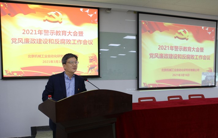 3月16日,北自所召开2021年警示教育大会暨党风廉政建设和反腐败工作会议。北自所党政领导班子、中层干部、党支部委员共50余人参加了会议。