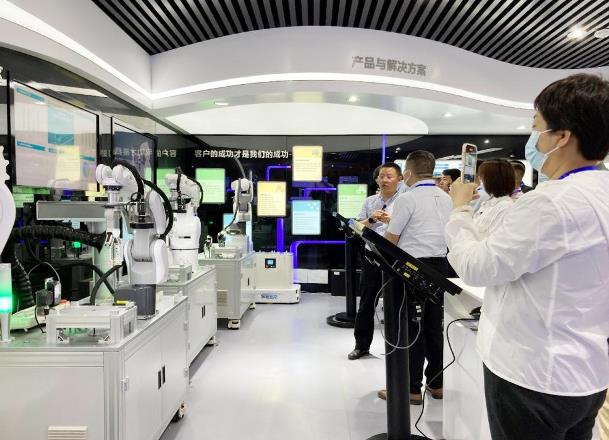 随后,学习小组参观了北自所智能制造实验室。实验室是基于智能制造整体解决方案打造而成,将设备、自动化产线、智能物流仓储系统、生产指挥系统、工业管理软件等智能制造的关键环节进行精准还原和完整呈现。在参观了智能制造实验室之后,学习小组对智能制造过程有了更直观、真切的感受。