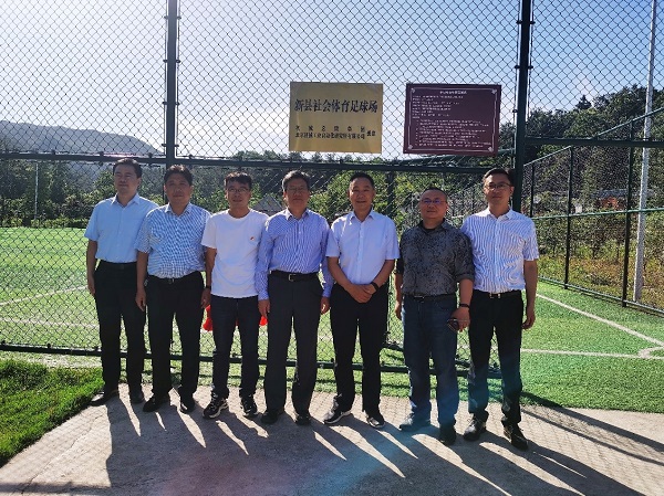 调研过程中,王振林书记带队来到援建的新县社会体育足球场进行考察,并举行了隆重的揭牌仪式。他指出,要让足球场得到充分利用,也要让更多公司员工参与到新县的乡村振兴工作中来,并提出要在今后工作中打造系统性的民生项目,更好地帮助和造福当地群众的生产生活。