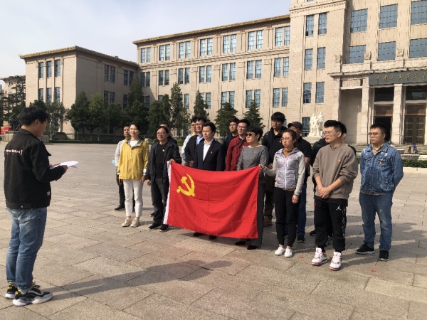 在鲜红的党旗下,支部书记陈传军带领新老党员们进行了集体宣誓,重温了入党誓词。