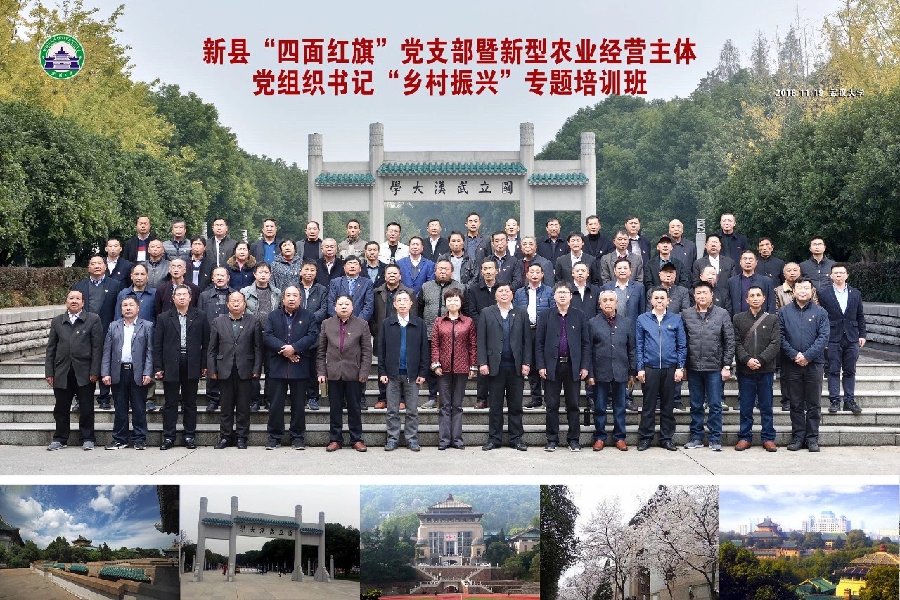 11月19日,由机械总院集团出资举办的新县“四面红旗”党支部暨新型农业经营主体党组织书记“乡村振兴”专题培训班在武汉大学开班,全县100名“四面红旗”党支部和新型农业经营主体党组织书记参加学习培训。
