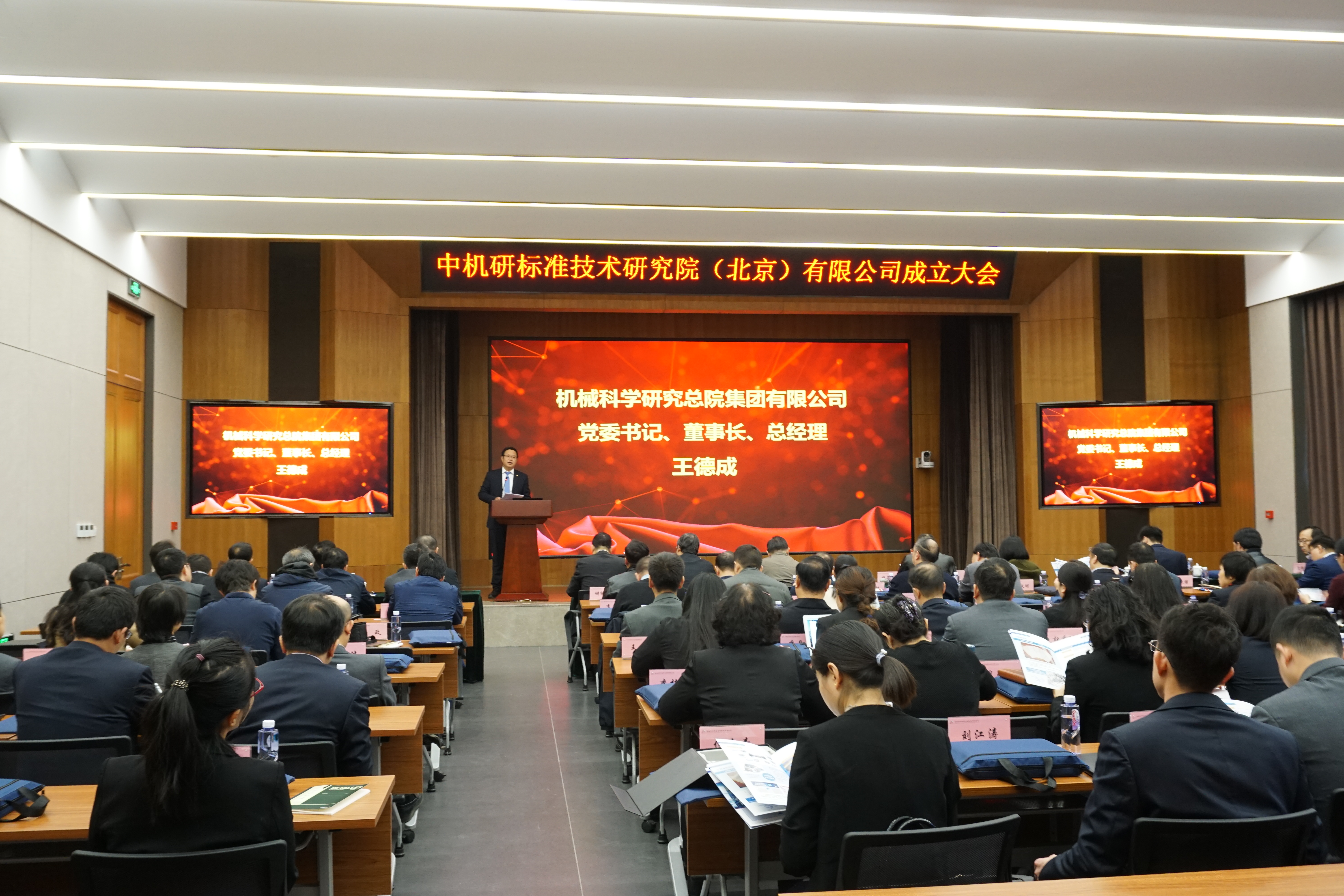 11月18日,机械总院集团在京召开中机研标准技术研究院(北京)有限公司(以下简称中机研标准院)成立大会,王德成党委书记、董事长,李建友副总经理,褚毅副总经济计师,行业发展部黄雪部长等集团领导,中国机械工业联合会杨学桐执行副会长,中国机械工业标准化技术协会谭湘宁理事长,北京市怀柔区投资促进局杨昊天局长,中关村标准化协会黄群秘书长,集团行业委员会全体委员以及生产力中心党政主要领导、中层干部共100余人参加了会议,会议由李建友副总经理主持。