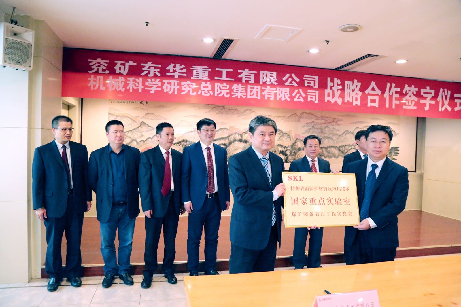 特种表面保护材料及应用技术国家重点实验室在东华重工设立煤矿装备表面工程实验室,材保所总经理吴勇授牌,赵峰代表东华重工接牌。