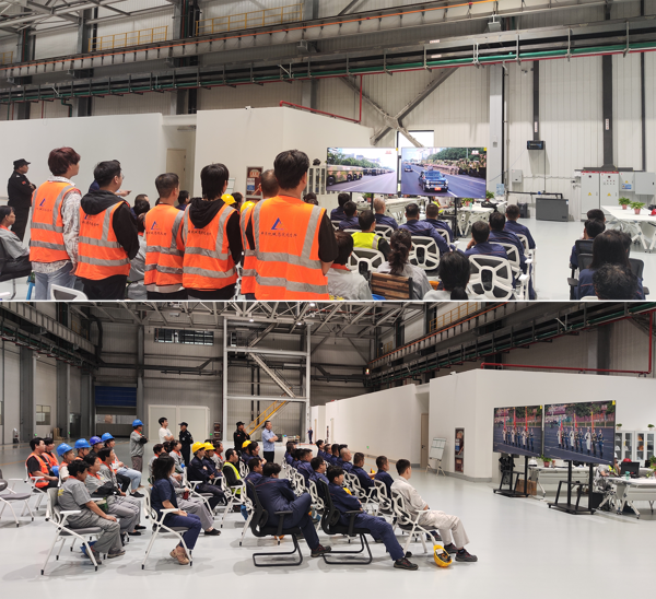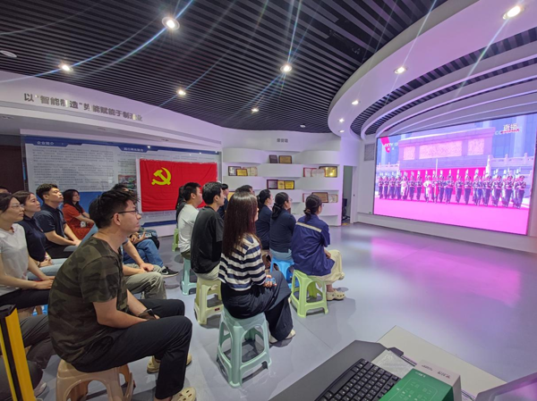 智能装配事业部职工在项目现场收看大会直播