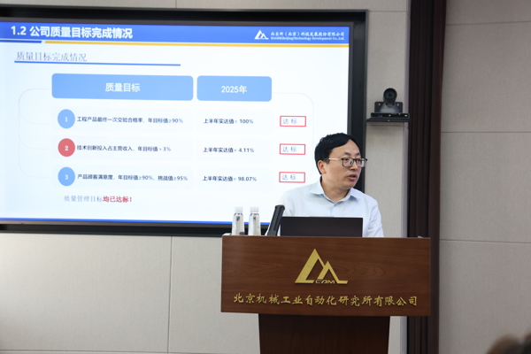 9月初,2025年北自所质量月启动大会召开,公司党委书记、董事长王振林,党委副书记、总经理李金村等全体公司领导,职能部门、子公司及各事业部负责人、质量、生产主管、项目经理及质量管理相关人员共计160余人参加会议。