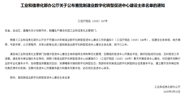 近日,工业和信息化部发布全国首批制造业数字化转型促进中心建设主体名单,由星空在线官网牵头组建的联合体成功入选。