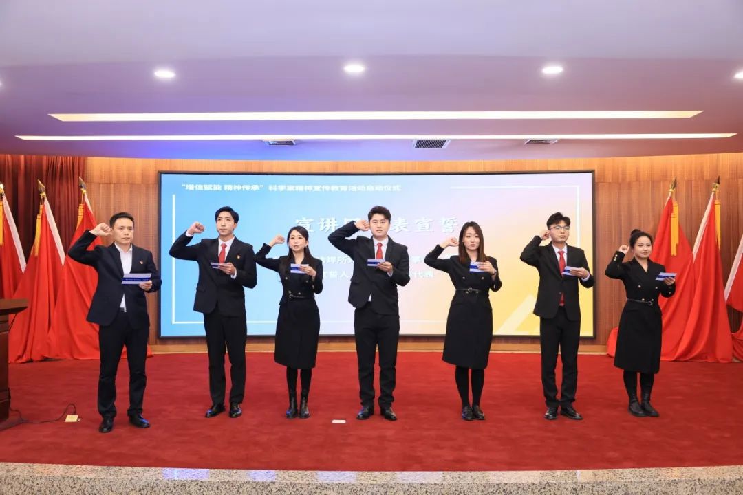 为大力弘扬科学家精神,彰显集团科技创新国家队使命担当,会议启动“增信赋能 精神传承”科学家精神宣传教育活动,李玉鑫为“尚学扬志 焊卫匠心”宣讲团成员颁发聘书,宣讲团团长雷振带领哈焊所青年代表进行宣誓。