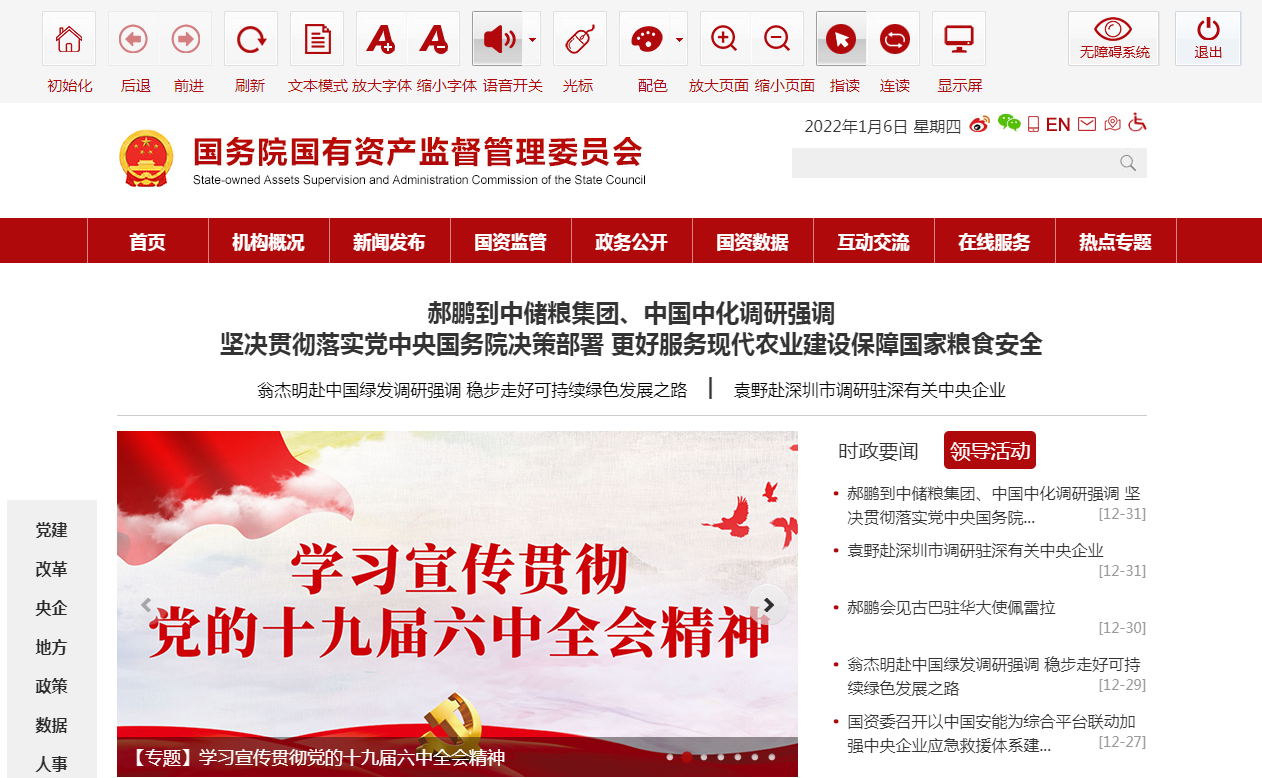 经过精心准备、反复测试,国资委网站适老化与无障碍改造相关功能于2021年12月31日正式上线运行。