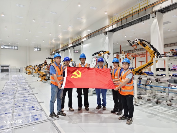 攻坚克难,汗水铸就智造脊梁。面对2025年3月设备到货时厂房未完工、无吊装、尘土弥漫的苛刻条件,智能装配事业部项目负责人李新带领团队“车拉肩扛”,仅用20天完成所有设备安装,远超预期。为冲刺“5月30日”投产刚性节点,团队放弃周末休息日,一周连续7天奋战在现场,五一期间仍高强度作业,以“节点倒逼进度、效率置换时间”的拼搏精神,在尘土飞扬的工地上,用肩膀扛起了智能制造的脊梁。他们的每一次装配调试、每一次深夜攻坚,都在无声地垒砌着行业的新标杆与高质量发展的基石。